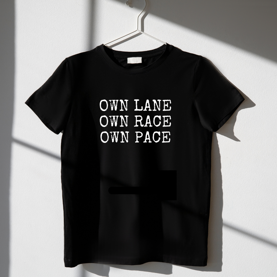 The Own Lane, Own Race, Own Pace Tee is a declaration of focused living — a mindset worn by those who don’t compete with noise, only with who they were yesterday. This tee is for the ones who move in silence, work in private, and rise at their own speed.