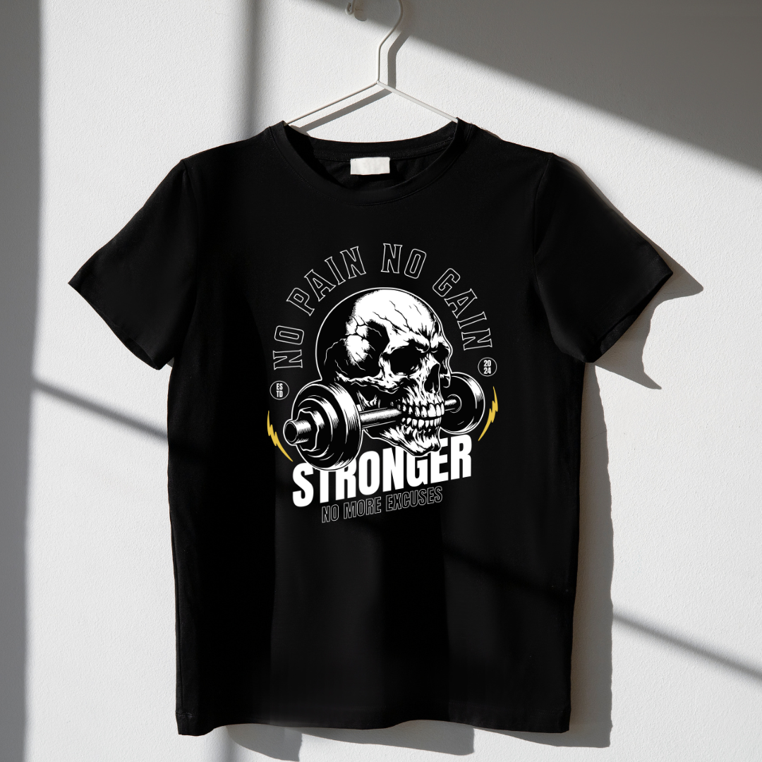 This tee doesn’t whisper motivation — it screams it. The Stronger Skull Tee is built for the lifters who don’t flinch at pain, don’t settle for average, and don’t believe in excuses. With a hardcore skull + dumbbell graphic and the mantra “NO PAIN NO GAIN,” this shirt is pure gym warrior energy.